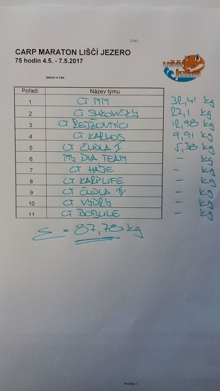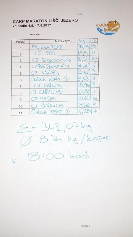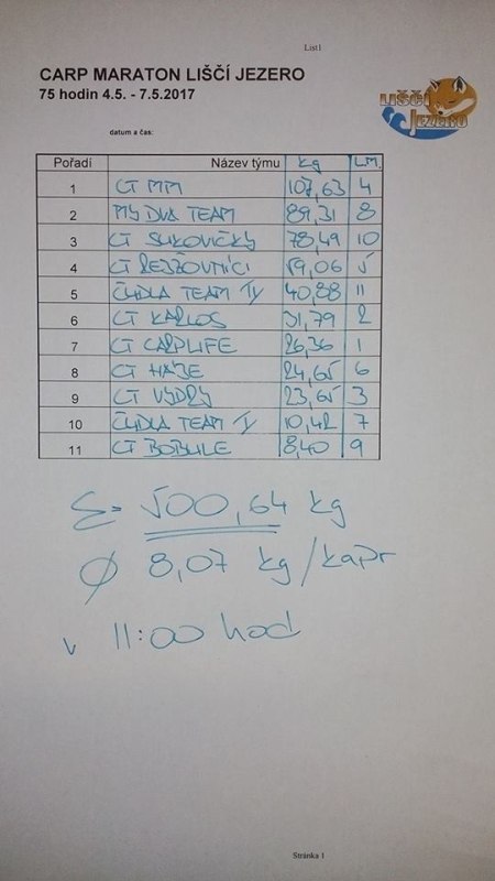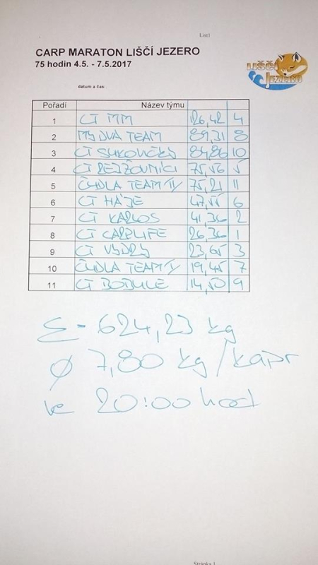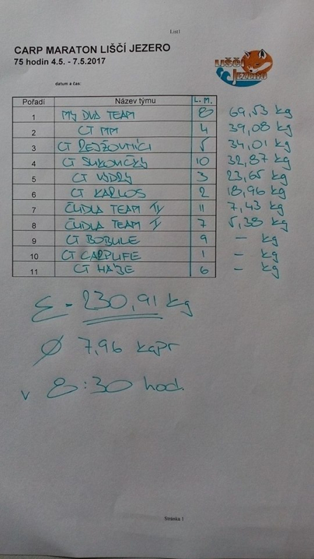 Carp Maraton 75 hod. Liščí Jezero květen 2017 (51 foto)