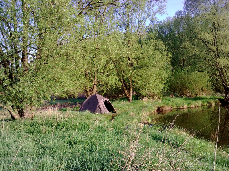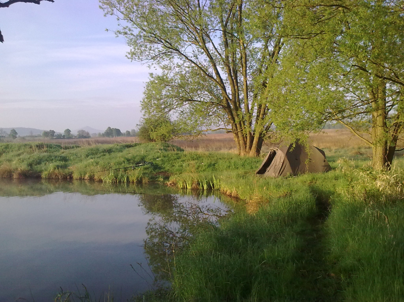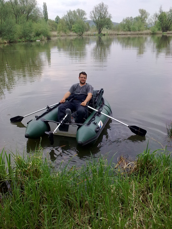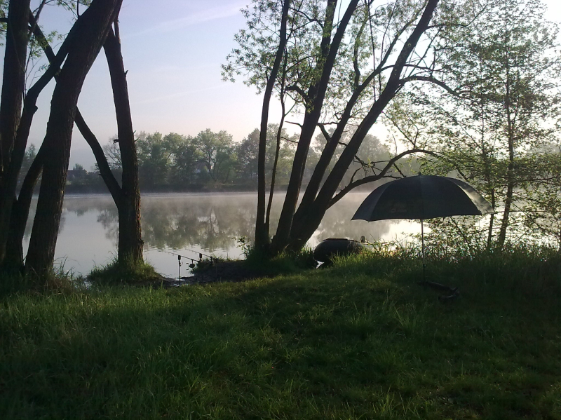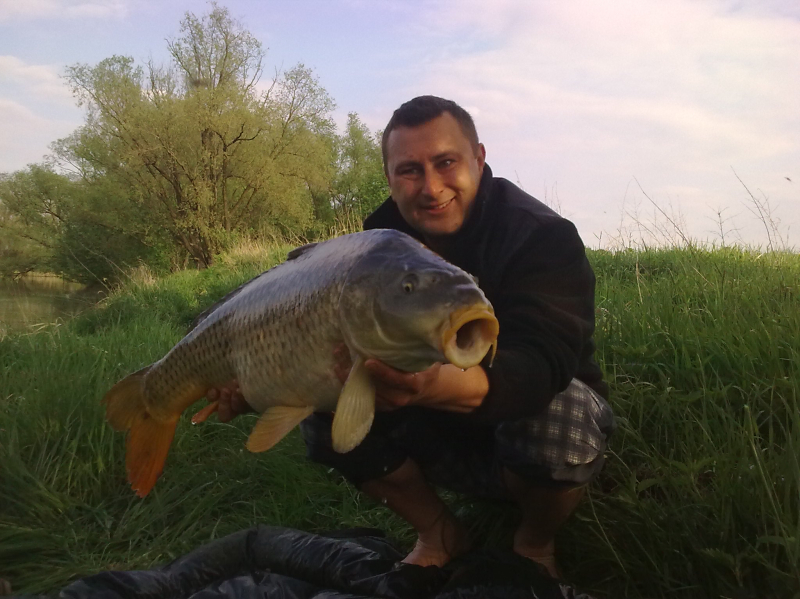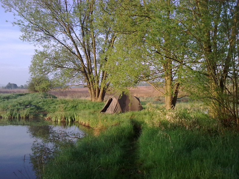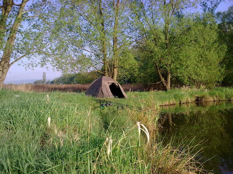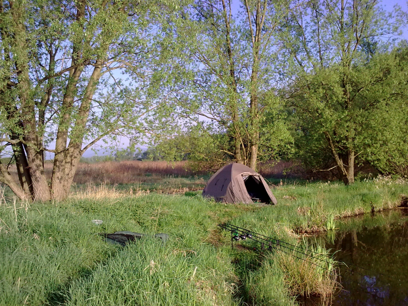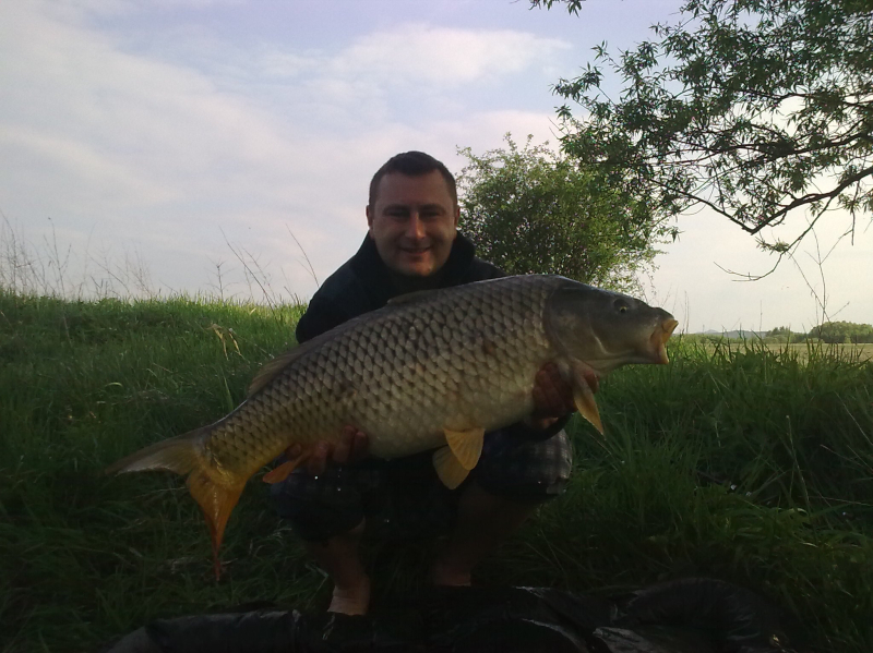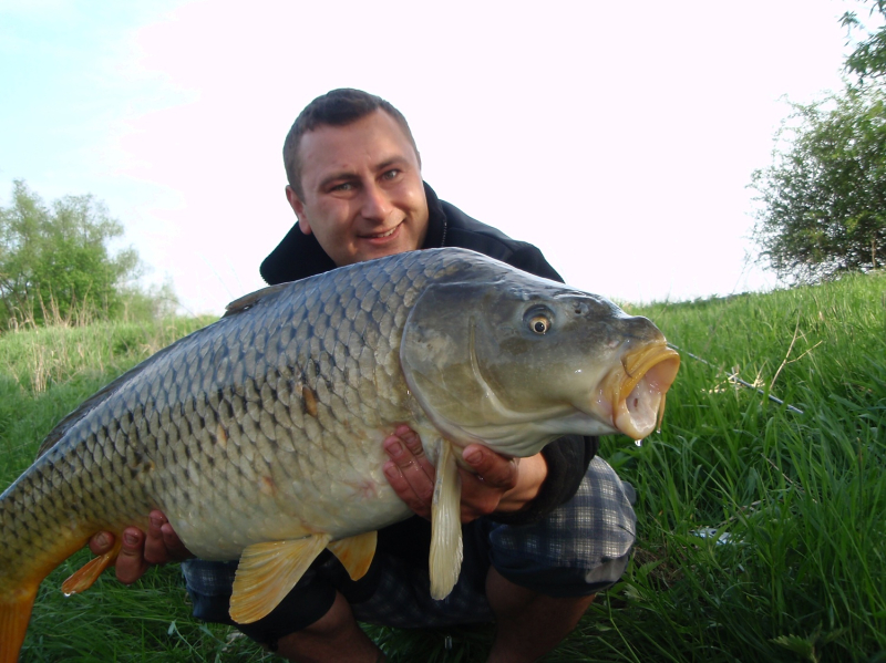 . . . no a po práci zase zábava . . . přichází přelom dubna a května a já se opět po tři dny ocitám "s Jakubem na rybách" . . ha ha jasně ne s tím co myslíte, ale se svým správcem revíru. Voda má už 17°C vše kolem je zelené a mé nové rybníky se k velké nelibosti mojí ženy stávají pro mne pořád větší a větší drogou. Jako minule jsme si rozdělili loviště s Kubou na malý a velký rybník. Kubík (zdrobněle zní směšně, když pomyslím, že má 115kg ha ha) si vybral zase větší rybník a tím četnost záběrů a lehkou kořist. Prý také rád chytá velké kapry, ale zase mu nevadí se k nim propracovávat přes počet těch menších ha ha. :) No a já?? Mě jako magnet přitahuje menší, ale složitější voda jižního rybníka a domorodí kapři co mi nedají spát. Je pravda, že už jsem v průběhu času do této vody vysadil několik (asi 15) velkých kaprů ale ty stoprocentně poznám. Aby ne jsou to mí miláčci a několik simpaťáků má už i jméno . . . jo já vím jsem asi blázen :). Kuba zvolil jen dva pruty (na tři by to nestíhal ani zavážet) a umístil je k potopenému důlnímu vozíku cca asi 150m od bivaku. Já rozdělil tři pruty, jeden pod padlý strom, druhý k ostrovu a třetí do rohu rybníka lemovaného porostem rákosu vše do mělčích partií. Výprava byla super víc než to no prostě skvělé jaro. A to v Čechách!!! Kuba skóre . . . no ani nevím druhý den už jsem to přestal počítat . . prostě moc!! Když šel spát tak to radši vytahoval, ale nic velkého vlastně tentokrát se ani nedostal přes deset kg. A já? Já za tři dny a dvě noci 8 záběrů a 6 ryb. Všechny přes deset kilo (jak jinak když sem ani menší nevysazujeme mimo lysců a domorodců, ty si i zde své místo zaslouží), ale hlavně největší byl domorodý, krásný a vitální kapr s obrovskou tlamou a vážící 14kg. Už nyní se těším až si udělám čas na další průzkumnou výpravu jelikož jeden z těch neproměněných záběrů byl opravdu kůůůň . . . možná kapr a možná jeden z kapitálních amurů co zde údajně žijí a v minulých letech likvidovali většinu rákosových porostů a také udic nepřipravených "masařů" líčících na nebohé pionýry. Když se mi podaří si tedy na jižní rybník sednout jelikož už nyní je na 14 dnů předem rezervován. . . :((