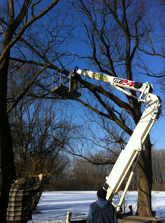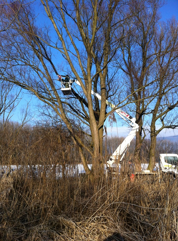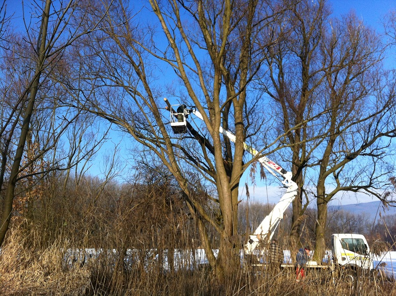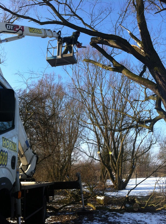 V uplynulém víkendu, jsem překonal svou vrozenou bázeň z výšek a z najaté plošiny odřezal větev ošklivě zlomenou silným větrem. K události došlo někdy před dvěma měsíci a určitě by 3 kubíky strouchnivělého dřeva ohrožovali bivaky rybářů. Tedy nebylo zbytí a nyní je vše v pořádku. A