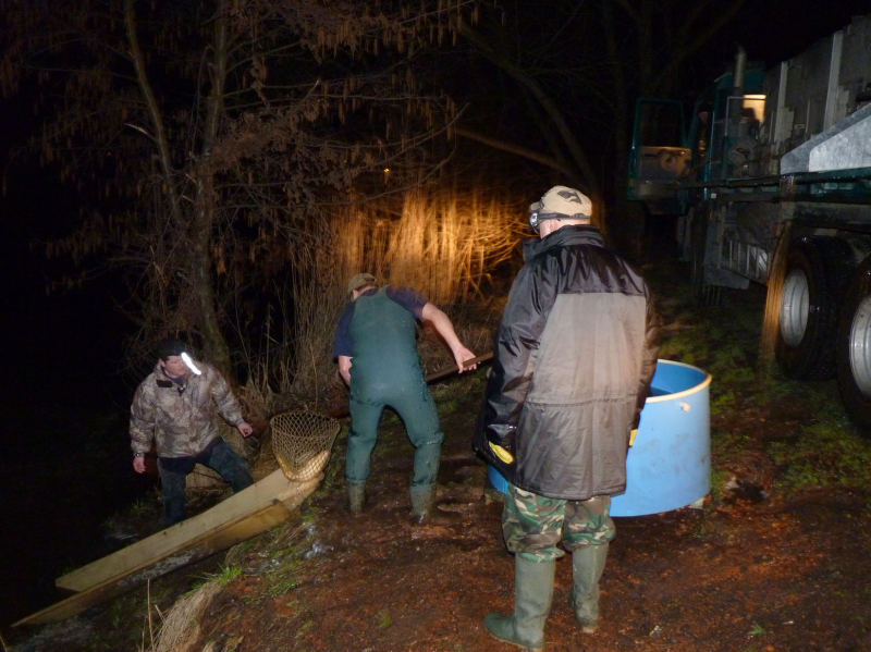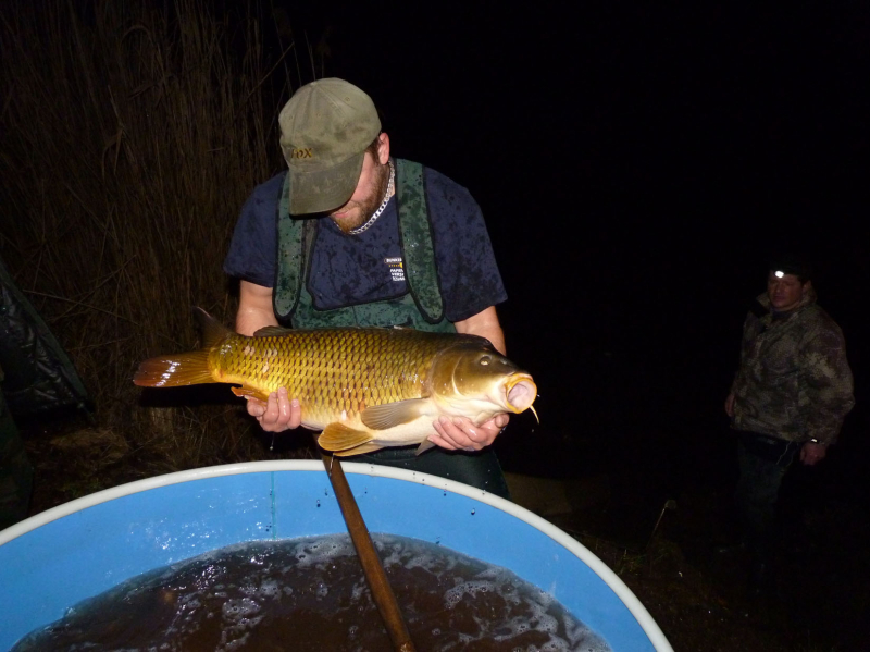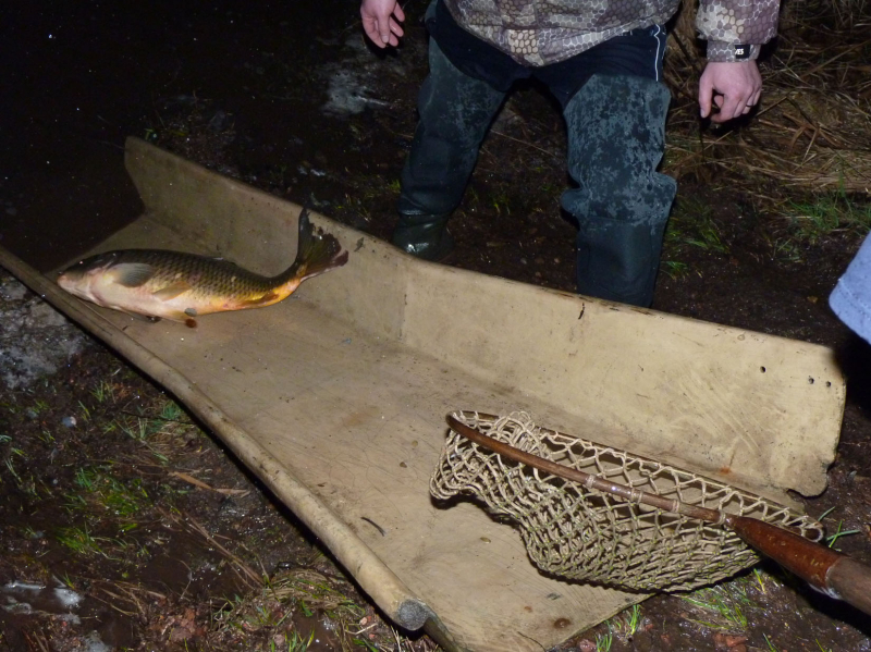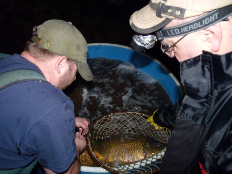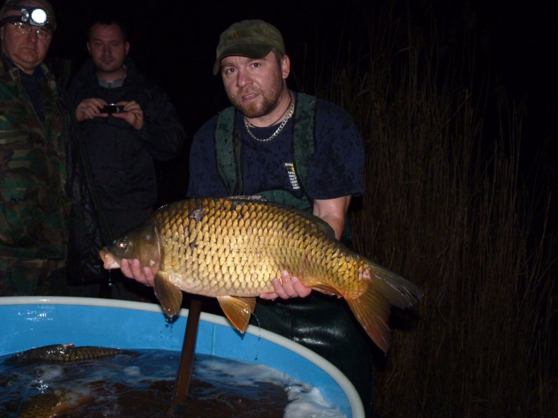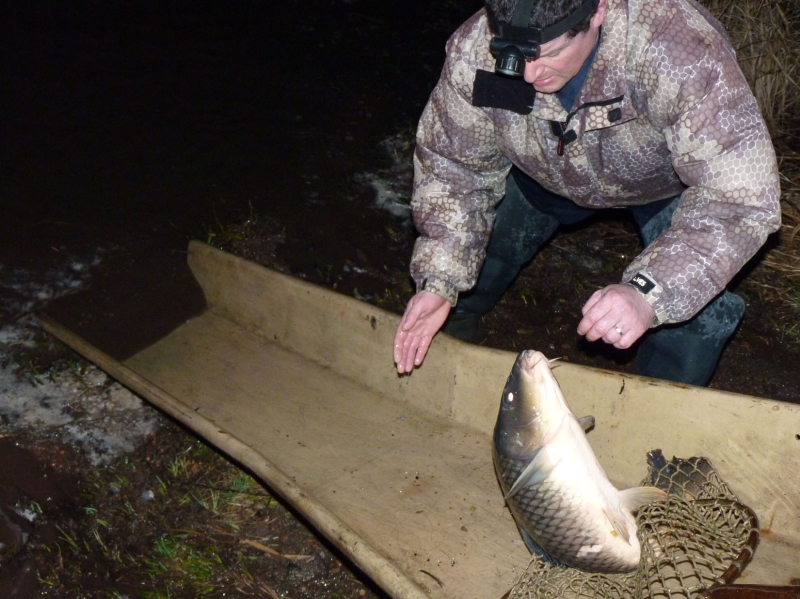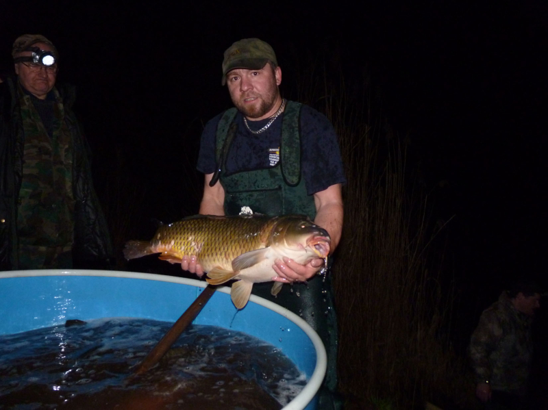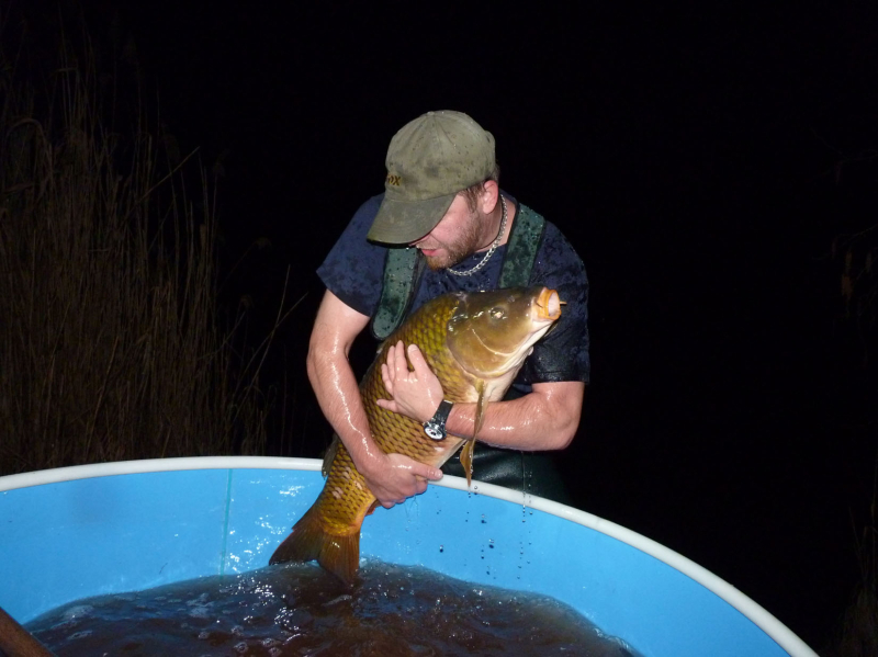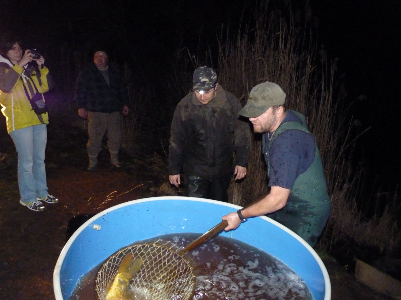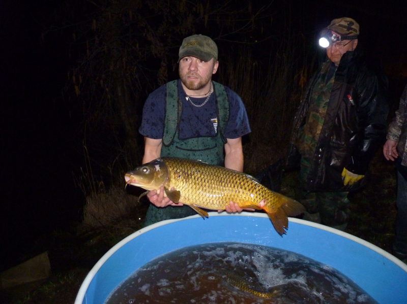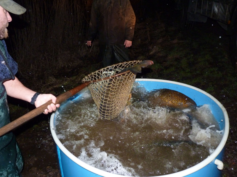 . . . a konečně ten den přišel . . . je 4:00 a já popíjím s ospalými kamarády v kanceláři kávu, natěšení debatujeme o tom co nás čeká a pak . . . pak jdeme připravit nezbytné pomůcky a náčiní s člunem, potřebné pro vysazování ryb. Před pátou ráno dojíždí k rybníku plně naložená tatra z rybářství Hluboká. Netrvá to dlouho a první šupináči s váhou mezi 6 a 14 kg ochutnávají svůj nový domov. Vše běží jako na drátkách a práce se daří jak má a po vypuštění 4. nádrže namáhavý a mokrý job končí. Společně s kapry zásilka z Hluboké obsahovala také 150 ks štiky (60 -75 cm). No trvalo to asi dvě a půl hodinky a i poslední šupináči byly dopraveni bezpečně do svého nového a bezpečného domova . . .