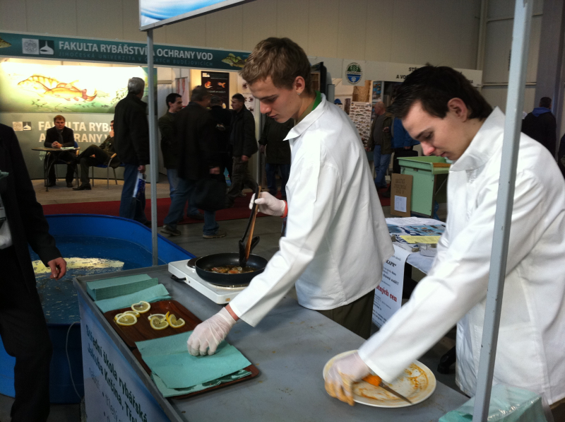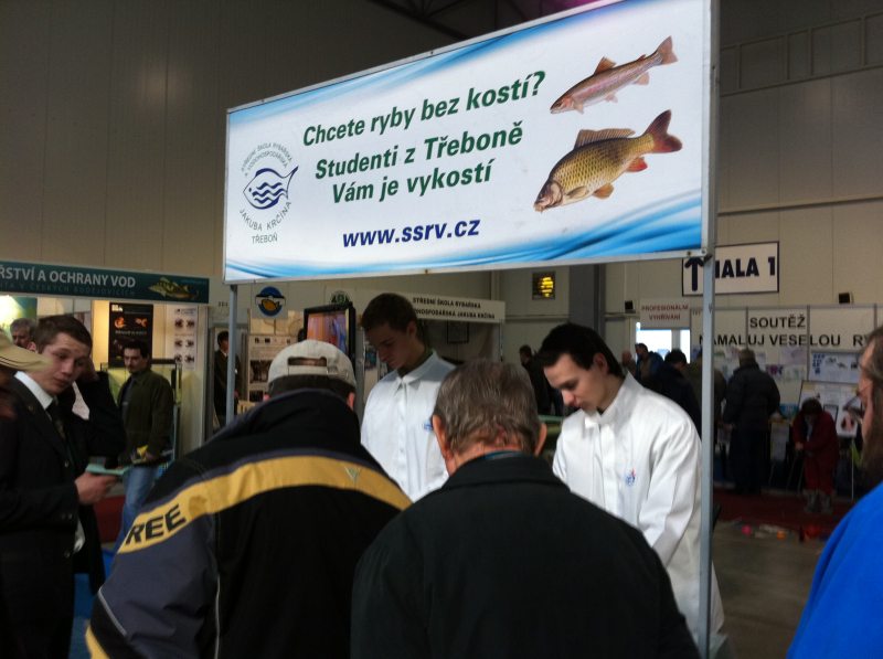 Pražská výstava Forfishing 2011, které jsme se s Kubíkem zúčastnili v pátek 25.2. na nás docela zapůsobila, a tak vám přináším pár osobitých a subjektivních dojmů a postřehů. Na této výstavě, jsem pořídil i pár zajímavých foteček, tak je přidávám pod tento text i s popisky do galerie. Na tuhle výstavu, jsme s Kubou vyrazili v tričkách a mikinách hrdě nesoucích loga a barvy Liščího Jezera. Měli, jsme především v úmyslu zanechat prezentační archy společně s vizitkami v rámci jakési propagace na stáncích našich partnerů a kamarádů, které jsme si za rok naší existence pořídili. Tedy po té co stánky vystavovatelů jako pana Václavíka, Jardy Těšínského (jetfish), pana Blažka (blaženy), a kluků z časopisů „rybář“ a „kapr a kapří svět“ byly s laskavým svolením jejich Bossů opatřeny našimi vizitkami. Zbylo dle očekávání hahaha :-) i trochu času na prohlídku expozice výstavy. No to se dalo tak trochu čekat že :-). No abych byl stručný, zaujaly nás tam v rychlosti 4 základní věci. Tak první byla jedinečná prezentace TV canalu F&H a krásné hostesky s těma miniaturníma sukýnkama (viz foto)!! Zvláště Kubík zůstal věrný své pověsti a slečny ho opravdu nadchly!! haha :-)!! Za druhé profesionalita a široká škála zboží a novinek pro letošní rok 2011 obchodníků s kaprařinou všech zvučných jmen a značek (již výše jmenovaných) nás opravdu nadchla a díky páteční menší návštěvnosti bylo i dost času a prostoru pro podrobné zkoumání. Vzorky zdarma od našich partnerů nás velice potěšili to jo. No ovšem . . né každý nás zná a proto došlo i na utrácení a ne zrovna v malém (ještě, že jsme nebrali manželky to by bylo fiasko haha :-)) Třetí postřeh byl ze stánků s všemožnými extrudami, burizony, a šroty. . ., tam bylo nejvíc narváno a svědčilo to tak o hlavní skladbě Českých rybářů. A čtvrtý postřeh navazuje na ten třetí a týká se prezentace u stánku ČRS kde se v malém bazénku tísnilo několik ryb v pestré druhové skladbě a vždy když už nějaká nebohá rybka svou chvilku slávy přestala zdravotně zvládat jako živá, přesunula se pohotově přes hochy ve slušivých rybářských uniformách až ke dvěma najatým kuchtíkům (asi stejnou organizací), kteří jí pohotově proměnili v chutnou baštu pro kolem jdoucí zdarma. :-( No nic proti. . . jen, že zde u této expozice ČRS jasně deklaroval svou funkci a poslání . . oproti nám soukromým revírům, no co na plat maso je maso a lidi je potřeba nakrmit!! Jen mi tohle „motto“ a chování nějak nepasuje do doby roku 2011 kdy na nás všechny – rybáře, ze všech časopisů, katalogů a jiných rybářských médií, všichni křičí heslo „chyť a pusť!“. Třeba se pro příště poučí a vystačí si s fotkami jako my . . . haha :-). No a pro příště z toho plyne i pro nás, že se asi zařadíme, také po bok vystavujících prestižních rybářských revírů chyť a pusť z letoška a s vámi našimi stávajícími i budoucími návštěvníky a štamgasty si dáme na výstavě v Praze v roce 2012 panáka nebo kávu. Zdraví Aleš „Lišák“