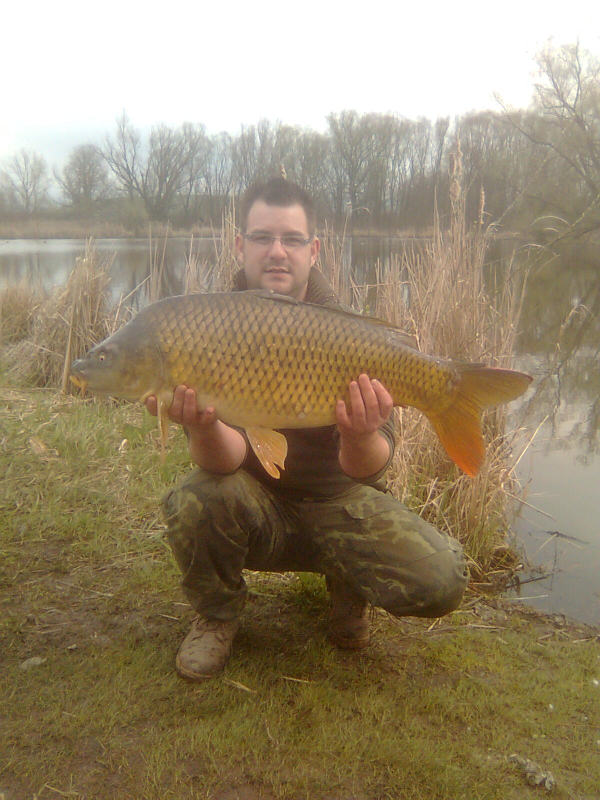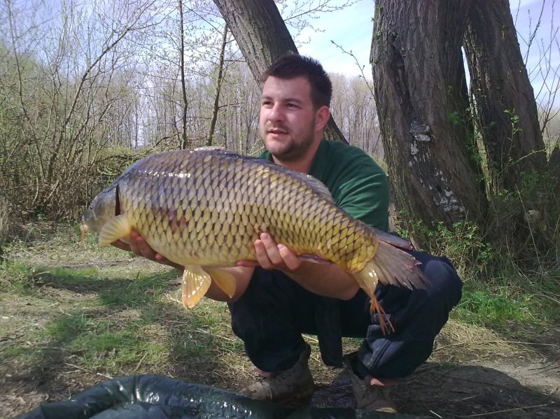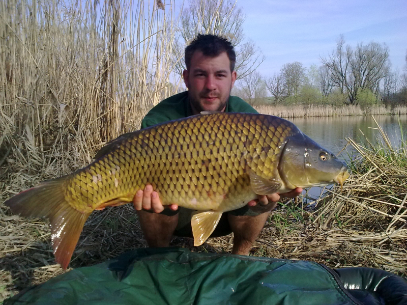 I přes to, že jsme nějaké ryby při jednodenních výpravách nachytali, rozhodli jsme se já a Kuba, vyrazit k rybníkům na 3. dny s bivakem a člunem, pokusit se ulovit i větší kousky. Voda měla v té době 12°C a aktivita kaprů a chuť přijímat potravu v podobě našich kuliček (14mm) začala oproti minulým dnům strmě stoupat. :) Nachytali jsme 8 kaprů nad 10kg. Kuba testoval nasazené kapry v severní části jezera a já jak jinak než na jižní části. Mě dva hektary vodní plochy odměnili pouze menšími kapry do 50cm (ty jsem poctivě přesazoval do severní části) a jedním 12kg domorodcem z kterého jsem měl opravdu upřímnou a velkou radost. Byl to docela vydřený úspěch, aby taky ne, když noční teploty klesaly pod 5°C. První letošní výprava v bivaku a opravdu vyvedená. . .!! :)