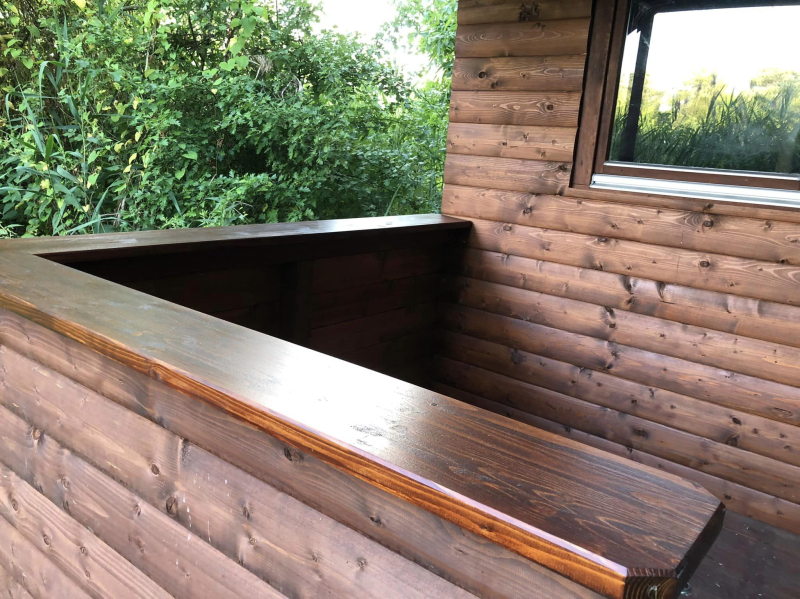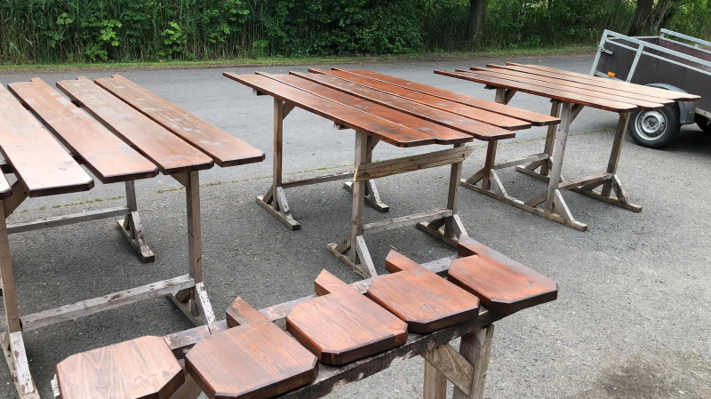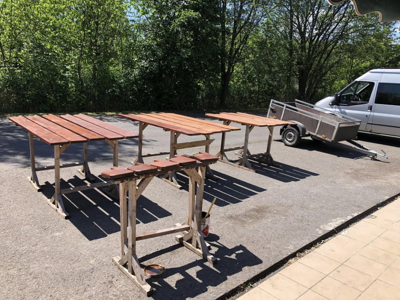 drobné vylepšení terasy našich 5 chat, drobnost, ale potěší .. :) a hned je pri posezení více místa okolo stolu.