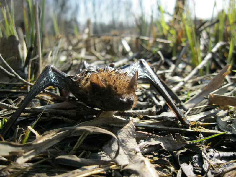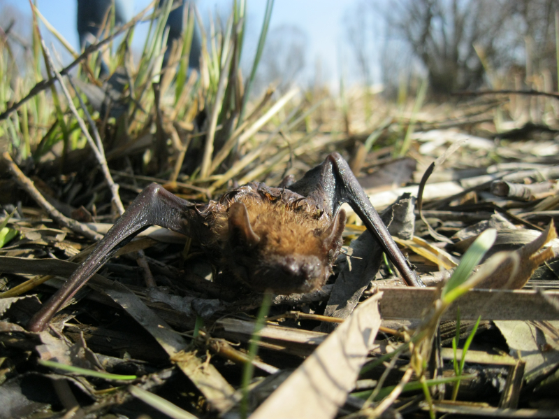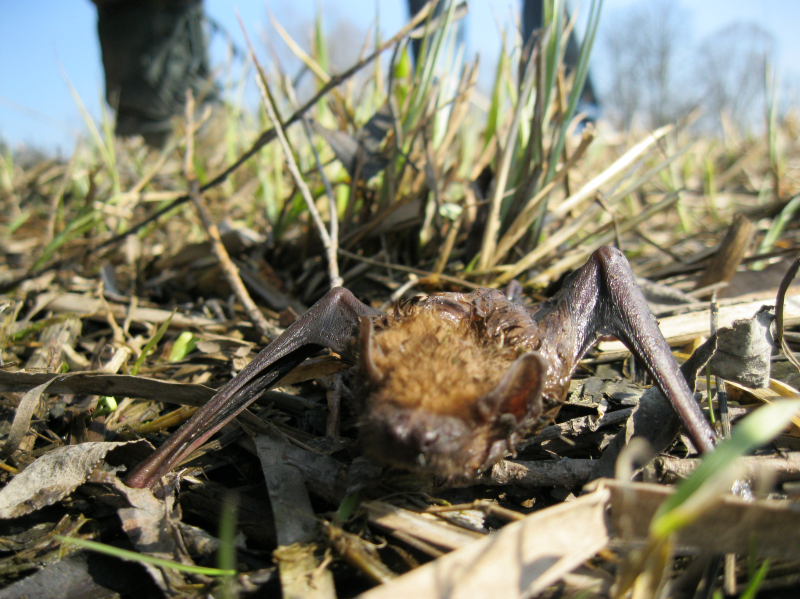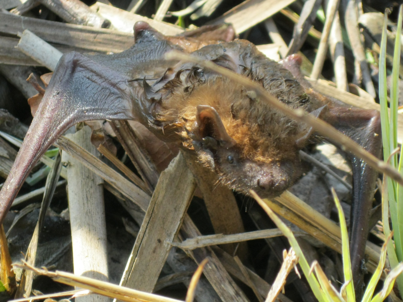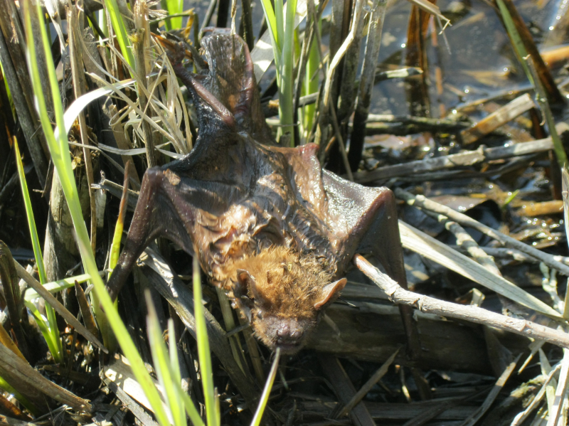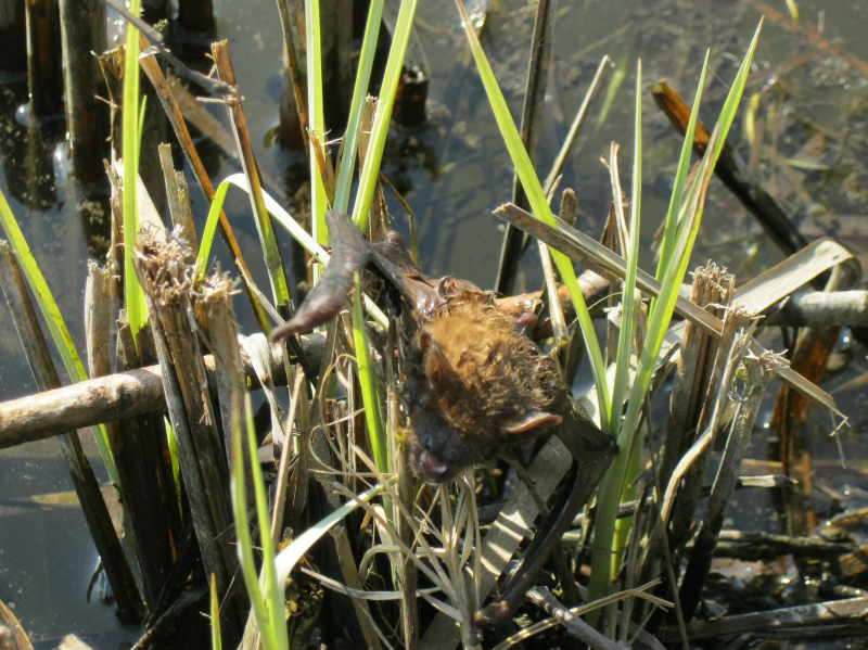 Teplé počasí probralo netopíry . .  a ti zmatení a hladoví létají i přez den a tak se stane, že to některý z nich nedá a spadne do vody. A pak ho musíme zachraňovat .. .  . :-)