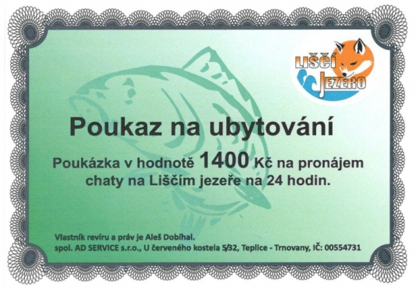 Dárkový poukaz na pronájem chaty Liščí Jezero